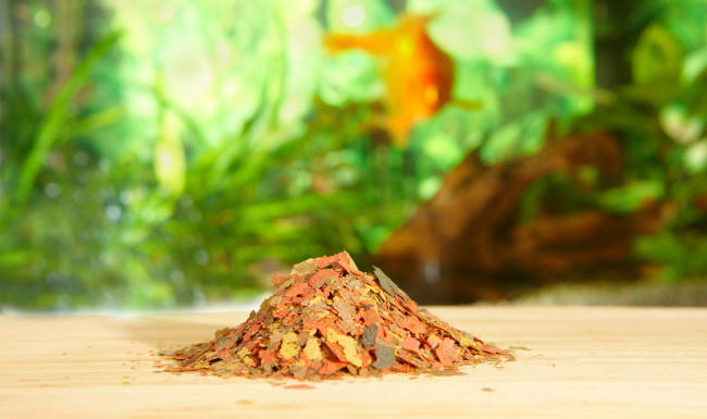 Кормить рыбок необходимо разнообразной пищей. Готовый корм от производителя приобретается в магазине или собирается из компонентов самостоятельно. Еда должна содержать 45% сухой массы, 45% животной и 10% растительной. Примеры компонентов: