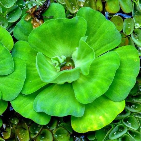 Pistia stratiotes (araceae) популярна по всему миру, но родиной многолетнего растения семейства ароидных является Африка, американские и азиатские тропики. Напоминает внешне раскрывшийся пучок салата или кочан капусты, чем отличается от всех других культур. В естественных условиях распространяется быстро, кусты могут вырастать до 30 см в диаметре.