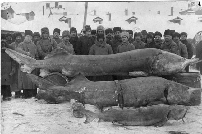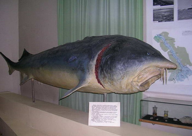 В 1922 и 1924 годах возле устья Волги и в Каспии были пойманы одинаковые рыбины – по 75 пудов (1224 кг), где около 700 кг весило туловище, 300 кг голова, а остальное — икра. В Национальном музее Казани хранится 4-х метровое чучело рыбы, пойманной в низовьях Волги. Ее возраст 60-70 лет.