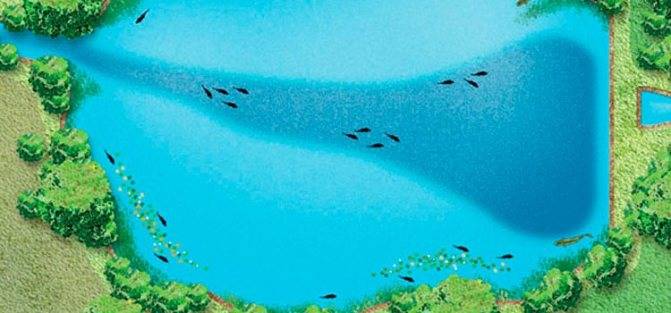 При прозрачной воде сделать это обычно не составляет труда — достаточно лишь внимательно осмотреть акваторию. Если вы увидите темный участок, явно выделяющийся среди глади своим цветом, это и есть яма.
