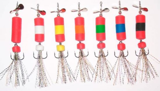 Эта абсолютно аналогичная приманка, единственным отличием в конструкции которой является небольшой пропеллер, установленный перед застежкой. Как правило, рыбаки применяют в качестве пропеллера обычную монету, которая предварительно стачивается до необходимой толщины. Но, тем не менее, нередки и случаи изготовления пропеллеров из отрезков листового металла.