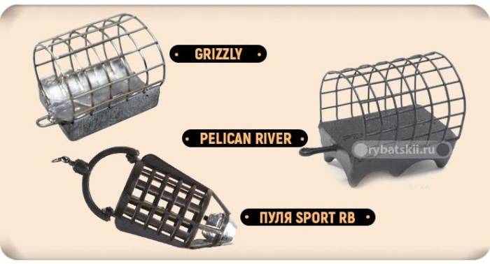 Среди них есть закормочные модели, большего объема (для первого броска) и кормушки для ловли.