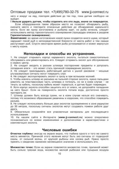 1. Не следует открывать корпус карманного эхолота, пытаться самостоятельно