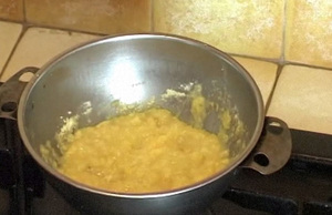 - Емкость с бобами помещают в водяную баню и снова ставят на огонь.