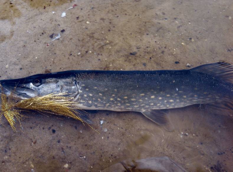 - Продолговатое длинное тело щуки хорошо маскируется среди коряг и затопленных веток деревьев.