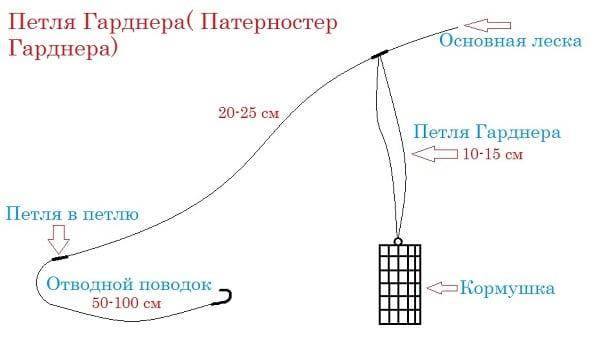 Для фидерной ловли линя подойдет оснастка Гарднера или симметричная петля. Монтаж кормушки происходит через вертлюжок и застежку.
