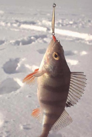 Бывали случаи, когда при ловле с толстой леской (0,24 – 0,3 мм) клёва всё нет и нет, но только возьмешь удочку с более тонкой леской (0,2 мм, например), как на тех же лунках начинаются поклевки. Может, это и случайность, но в последнее время всё чаще повторяющаяся.