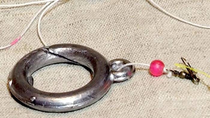 Свое название монтаж донки для рыбалки получил из-за использования свинца в виде кольца. Стоит отметить, что такое грузило лучше остальных форм держится на сильном течении и илистом дне.