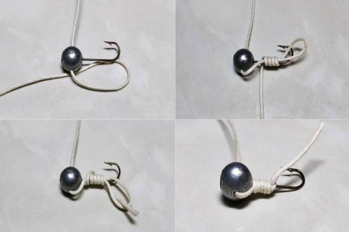 Ненадежны простые узлы, леска, закрепленная на цевье, стопорный узелок восьмеркой. Чтобы подвесить мормышку без ушка, удобно использовать самозатягивающуюся петлю. Но можно завязать и другим способом: