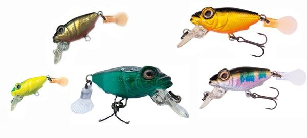 - Отличный вариант – воблер. Он должен быть 2 – 3 см в длину, с большим заглублением, активной игрой и хорошей балансировкой. Обычно такие приманки выполняются тонущими. Тройник у приманки должен быть один, а окраска должна имитировать мелкую рыбу. Если вода мутная подойдут и более яркие цвета.