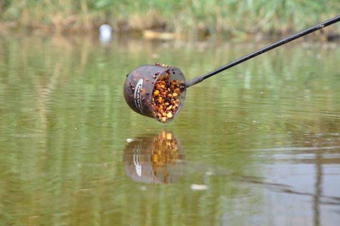 - Если прикорм осуществляется с берега, что его следует забрасывать в зоны роста водной травы или кустов, которые располагаются на бережных зонах в воде. Также можно забрасывать отдельные ингредиенты прямо в воду, чтобы они просто уносились по течению. Для этого можно использовать вареный горох, геркулесовые хлопья или вареную пшеницу.
