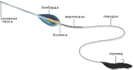 Существует много разных вариантов оснащения бомбарды. Чаще всего рыболовы используют классический монтаж.