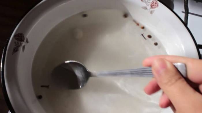 - Вскипятите воду, добавьте соль. Когда она полностью растворится, бросьте специи и сразу снимите с плиты.