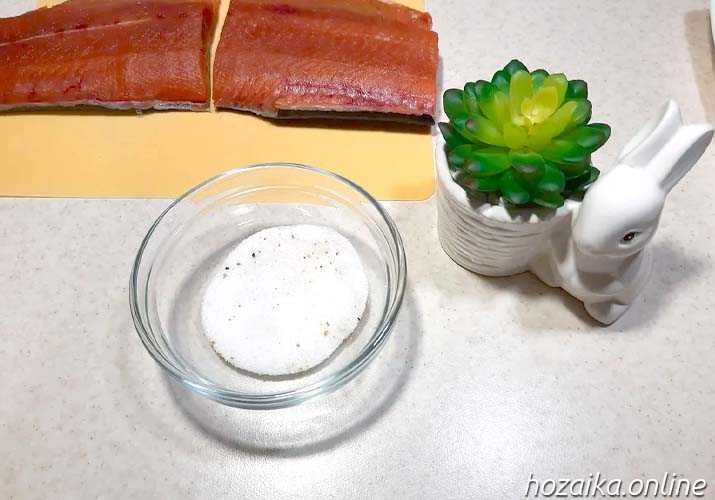 Рыбу ровным слоем присыпают этой смесью со всех сторон и заворачивают в пергамент. После этого, ее помещают в посуду и ставят в холодильник.