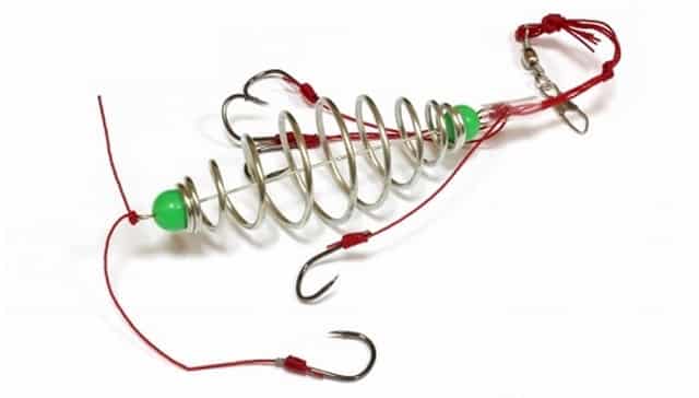 - «убийца карася» — специфический тип пружинки, в которой не используется свинец, она изготавливается из 3 элементов последовательным соединением. К каждой из трёх пружинок крепится по 1 крючку. Поводок берут длиной 5 см из плетёнки. Идеально подходит для крючков №4-6. Между поводками стоит выдерживать дистанцию 12 см. К концу крепят грузило от 20 до 50 г.