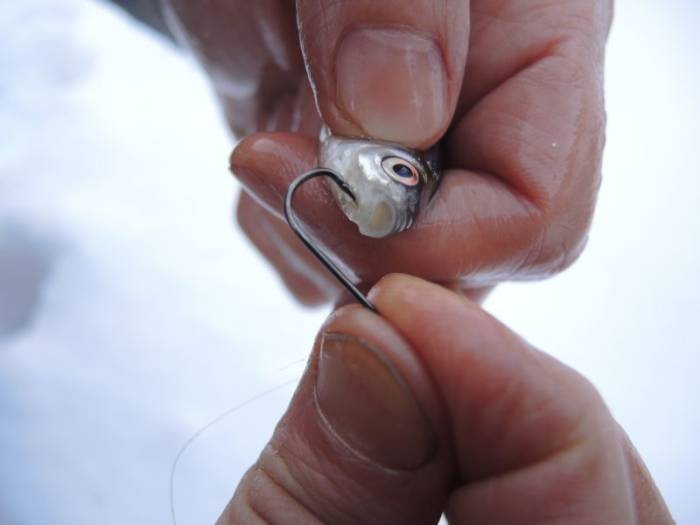 Используется как вылов с общей снастью вместе со скользящим грузиком или на дроп-шот. Также данным способом можно делать насадку для вылова на мормышку.