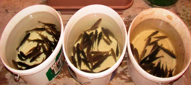 Но гораздо быстрее получиться достать нескольких мальков сразу «малявочником» – небольшим подъемником из сетки. Опускают в воду на отмели. Закармливают крупой, крошками и через 15 минут поднимают на берег. Извлекаются подходящие по размеру особи.
