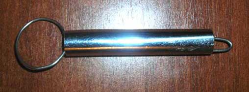 Изготовленный из трубки рыболовный отцеп с ударником круглой формы, предназначенный для выбивания на рыбалке блесны, мормышки, балансира и воблера, представлен на фотографии.