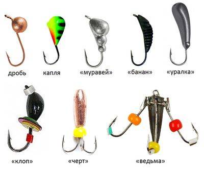 - Приманка «муравей» или «уральская» в период игры не отклоняются от вертикали, но их крючки способны делать повороты влево и вправо;