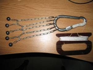 - ‘Карабин в виде капкана’. Отцеп соединенный с несколькими цепями, на которых находятся крючки и грузики. Все это крепится к веревке. Также популярный вид отцепа, который не сложно смастерить самостоятельно.