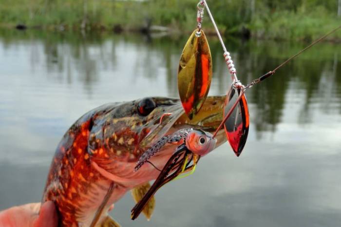 Неплохим вариантом проводки спиннербейта является волнообразная подача. Приманка движется по кривой траектории в толще воды с переменной скоростью и провоцирует на хватку даже пассивную щуку, не отзывающуюся на равномерное движение.
