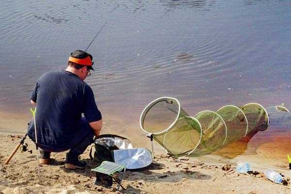 - Затенённое место (и по возможности так, чтоб тень там была на протяжении всего дня). Если рыбалка предполагается долгой (более одного дня) и такое место найти не удалось — лучше не полениться и сделать укрытие садка от солнца (например — растянув над ним на колышках какую-нибудь ткань).
