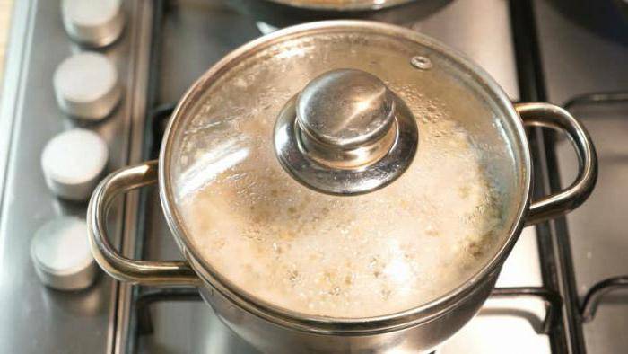 - налить в кастрюлю немного воды (не больше стакана), и когда закипит, высыпать смесь;
