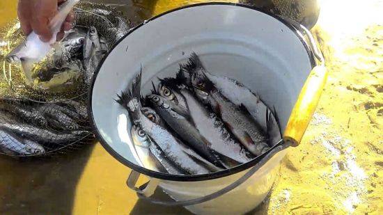 - В наполненное рассолом ведро кладут промытую рыбу: вниз — более крупную, наверх — мелкую.