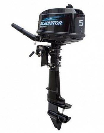 Бензиновый двигатель GLADIATOR G5FHS подходит для 2-х и 4-х местных надувных лодок со стандартным транцем. Мощность в 5 л. с. позволяет развивать скорость до 15-20 км/ч, в том числе и против течения. Небольшую ПВХ модель с двумя рыбаками легко выводит в режим глиссирования. Лодочный мотор оснащен многофункциональной трансмиссией и эффективной системой охлаждения с датчиком температуры. Запускается агрегат ручным стартером, на котором предусмотрена блокировка случайного старта. Регулировка угла атаки винта и фиксация положения адаптирует привод для работы в условиях мелководья. Владельцы отмечают прочность корпуса и оптимальные эксплуатационные характеристики. Из недостатков выделяют неустойчивую работу мотора на низких оборотах.