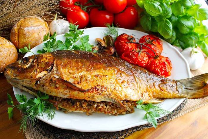 По-настоящему сытным и вкусным получается карп фаршированный гречневой кашей. Рыба отлично пропекается на мангале, мясо буквально само отслаивается от кости. Карп, запечённый по рецепту с гречкой, можно готовить без длительного маринования.