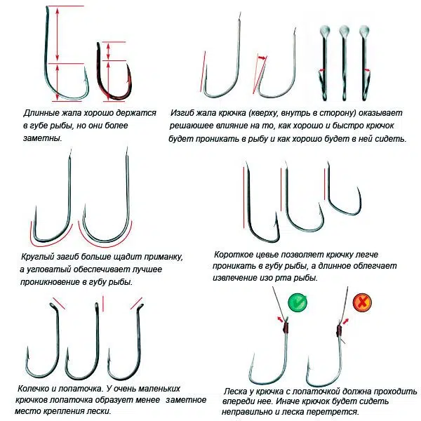 - Выбирайте крючки с хорошо видимым загибом, чтобы удобно снимать ловленую рыбу.