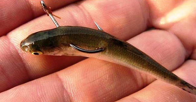 - Самым удобным и надежным способом будет хитрая снасть опытных рыболовов. Канцелярская резинка одевается между главным плавником и хвостом. При плотном обматывании резинки никогда она не спадет. Таким образом, рыболов сохраняет живца абсолютно целого без повреждений. Сход снижается к минимуму, в отличие от первых двух способов.