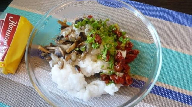 - Лук нарезать мелкими кубиками и слегка обжарить на растительном масле, остудить.