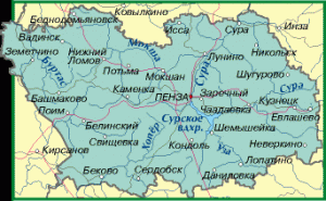Пензенская область располагается в центре европейской части России в Приволжском федеральном округе. Спутниковая карта Пензенской области наглядно показывает, что регион по большей части состоит из распаханных степей; только около 20% территории занимают леса.
