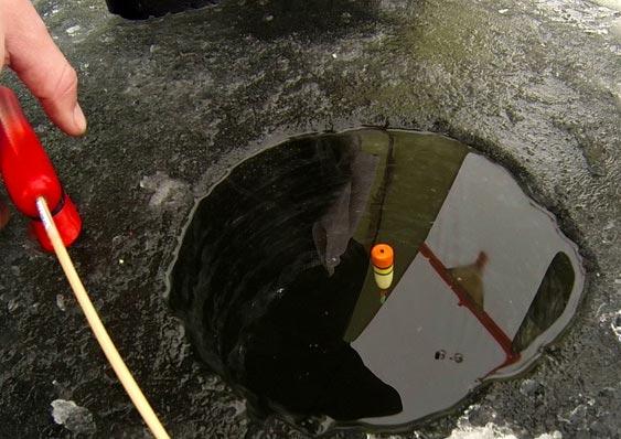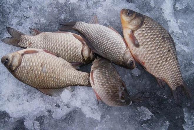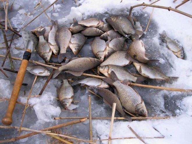 - Найти и поймать карася со льда в большом пруду можно на ямках, корягах, неровностях на дне, под береговыми свалами.