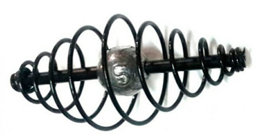 - Обычная спираль для прикармливания представляет особой классическую кормушку без дополнительной огрузки. Она не пригодна для крупных зерен, этот вид применяется для работы с мелкофракционными смесями. Леска пропускается через стержень, поэтому заменить ее можно только совместно со всей оснасткой.