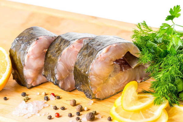 Когда время истечет, слейте рассол, промойте рыбку под водой, положите на дуршлаг, чтобы остатки влаги стекли. Разрежьте порционными кусочками, выложите их на тарелку. Для красоты полейте оливковым маслом и украсьте нарезанными кружочками лимона со свежей зеленью.