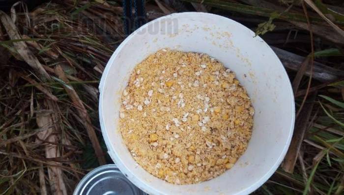 Далее представлен один из рецептов приготовления прикормки. Необходимо взять в равных частях перловку, овсяные хлопья и панировачные сухари, несколько банок консервированной кукурузы, 3 ст. ложки мёда и столько же нерафинированного подсолнечного масла.