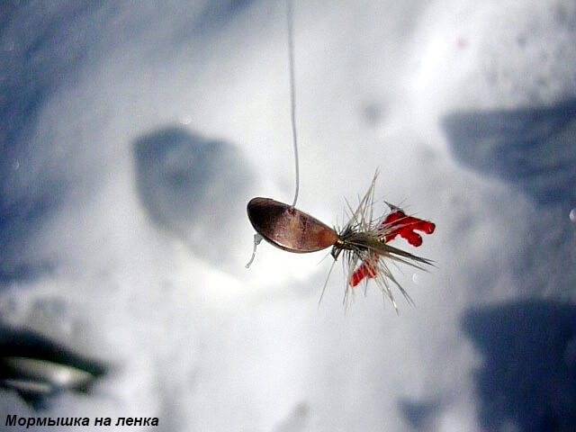 15. Для ловли на зимнюю удочку применяют как искусственные приманки (мушки), так и натуральные наживки. Зимой ленок хорошо реагирует на червя, личинку репейной моли, ручейника, короеда, мормыша и другие приманки