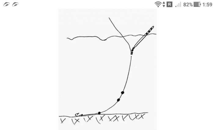 - Поплавочная снасть для ловли леща в проводку готова, но смотрите внимательно на рисунок, как эту оснастку нужно проводит по дну реки.