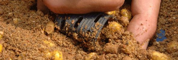 Крупные ячейки в такой кормушке приведут к быстрому вымыванию корма и снижению поклева. Для снижения вымывания используйте глину, землю или еще лучше ил, находящийся на месте ужения. Ил придает закормочной массе родной запах, успокаивая осторожных особей. При ловле на течении необходимо забрасывать корм (или кормушку) выше по течению.