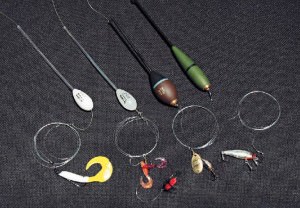 На конце основной лески вяжется небольшая петля, в которую заводится и тоже завязывается петлёй поводок с крючком. Немного выше этого участка устанавливается кормушка на поводке из тонкой лески. Достоинство такой конструкции в том, что крупные лещи после поклёвки стремятся уйти как можно глубже в захламлённое дно водоёма.
