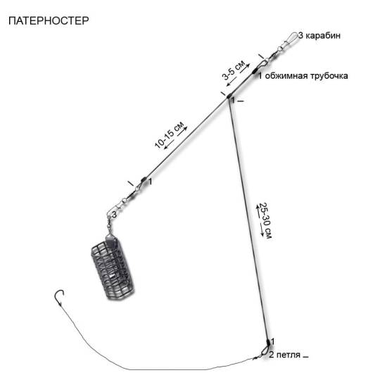 Для изготовления петли берётся 0,5 метра жёсткой флюорокарбоновой лески, из которой завязывается основная петля длиной 15 см и небольшая петелька для основной лески. На петле большего диаметра устанавливается кормушка, которая свободно перемещается по леске.