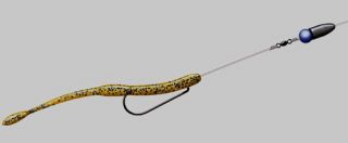 Замечено, что при проводке на обычном крючке виброхвосты начинают вращаться, что уменьшает количество поклевок. При использовании офсетного крючка образуется некое подобие киля, который огружает приманку в определенном положении и не дает ей вращаться.Приманки типа «Червь», «Слаг», «Октопус» не имеют собственной игры и крючки для них лучше подбирать обычного типа с удлиненным цевьем, а насаживать тело с головы. При этом приманка играет свободно, и количество пустых поклевок заметно снижается.В любом случае, при сборке очередного нового монтажа перед началом ловли желательно протестировать снасть на мелководье, чтобы визуально и тактильно, на ощупь, оценить игру и поведение приманки при различных скоростях и типах проводки.