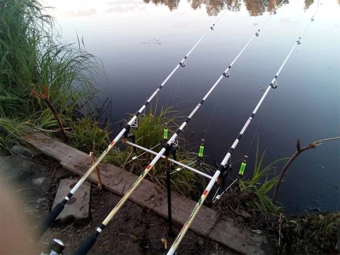 Основа снасти – фидерное удилище. От обычного оно отличается большим количеством пропускных колец. Последние мелкие и установлены близко к поверхности бланка. Последний обычно разборный, штекерного типа, с несколькими (3…5 шт.) сменными вершинками разной жесткости. Их применяют, ориентируясь на условия ловли.