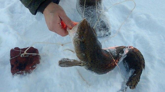 Это замечательная рыба, являющаяся санитаром рек и озер. Пятнистый в первую очередь поедает больных, старых и ослабленных представителей подводного мира. Рыболовы-зимники пользуются этим характером хищника и успешно ловят его на живца, куски мяса или снулую рыбку. Главные снасти для удачной рыбалки на налима со льда — это жерлица и зимняя удочка.