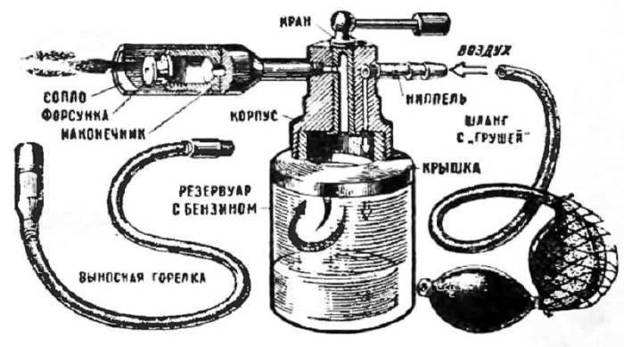 Благодаря простоте конструкции и отсутствию дорогих и сложных деталей бензовоздушная горелка для пайки вполне доступная для самостоятельного изготовления.