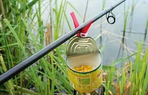 Забросив снасть, выматываем слабину лесы, втыкаем донку в грунт и подвешиваем сигнализатор поклевки или просто скатанный в шарик комок глины или земли. После поклевки, такой «сигнализатор» отвалится от рывка, мы увидим, что к нашей снасти подошла рыба.