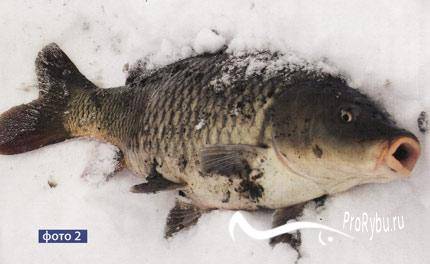 Зимой довольно легко перекормить сазана, так как он столуется в это время года совсем мало. Подсыпайте прикормку постепенно, по мере её съедания или размывания добавляйте в лунку ещё. Так Вы не перекормите рыбу и в тоже пора будете её держать в точке ловли.