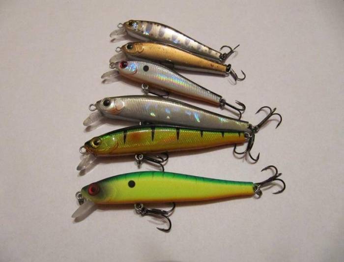 - Воблеры. Применяются тонущие приманки (плавучесть определяется по классификации), длиной не менее 10-и см. Следует отдавать предпочтение воблерам с шумовым эффектом. Цвет особого значения не имеет, но лучше «работают» приманки, окрашенные в яркие тона;